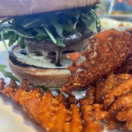 I went here for a friend's birthday with a group. The restaurant has private parking and was pretty quiet. I was surprised it wasn't busier at the time we were there but at least the service was quick, perhaps as a result. The waiter for our table was attentive and professional. He made sure everyone had a glass of water and I liked that the businesses uses paper straws. Everyone ordered appetizers including hummus, crab dip, and salads. I personally had the grain salad. I liked it for the most part but I do believe it needed more cranberries to really set it off. As an entree, I had the ribeye steak. I liked it a lot. The waiter suggested getting the potatoes mashed instead of roasted and I stand by his suggestion. It also came with asparagus. Others in my party had the smoked brisket, the veggie burger, the pork chop, French fries, and the chicken. I let one person taste my steak in exchange for a taste of the brisket. She felt strongly that the steak was better than the brisket, which aligns with the waiter's comment that the steak is the best thing on the menu. Everyone enjoyed their food though. It was hot, tasty, and came out in reasonable time. The restaurant was also clean and relatively upscale. I would definitely come again if presented with the opportunity.